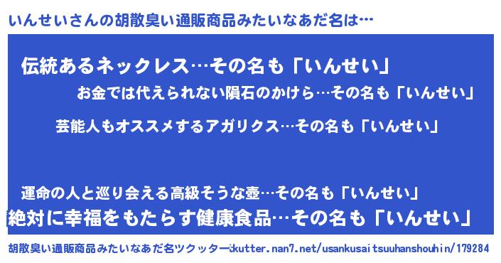 | 意味不明あだ名 | 『自称いんせい』『もやし科いんせい属』 |