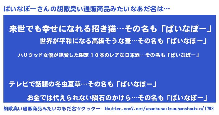 | 意味不明あだ名 | 『住所不定無職ぱいなぽー(65歳)』 |