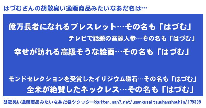 | 意味不明あだ名 | 『エリンギ科はづむ属』『ペロリンはづむ』 |