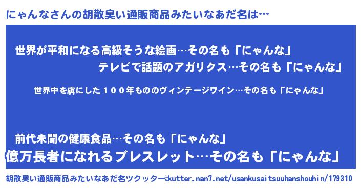 | 意味不明あだ名 | 『住所不定無職にゃんな(4歳)』 |