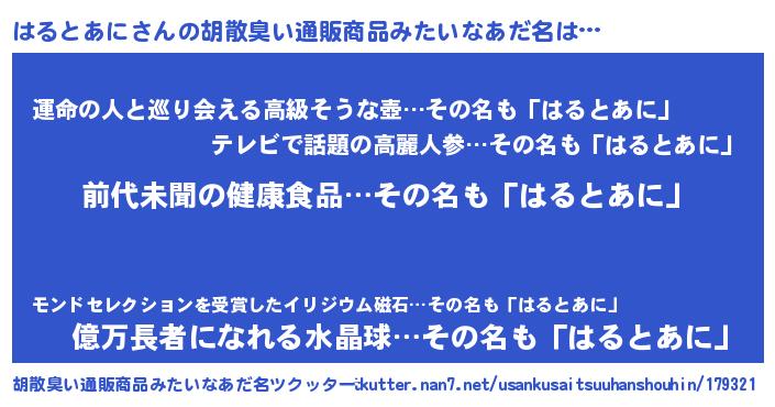 | 意味不明あだ名 | 『ヨモギ科はるとあに属』 |