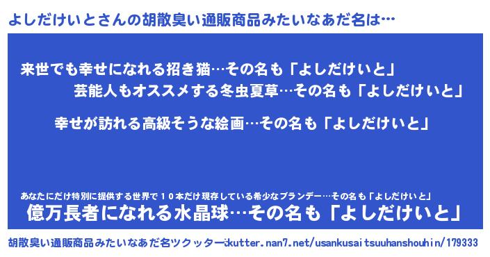 ヘコむあだ名 | 『牛乳』『よしだけいと(遠い目)』 |