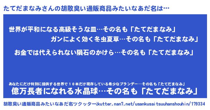 | 男性向けラノベタイトル風あだ名 | 『ノーゲーム・ノータテダマナミ』 |