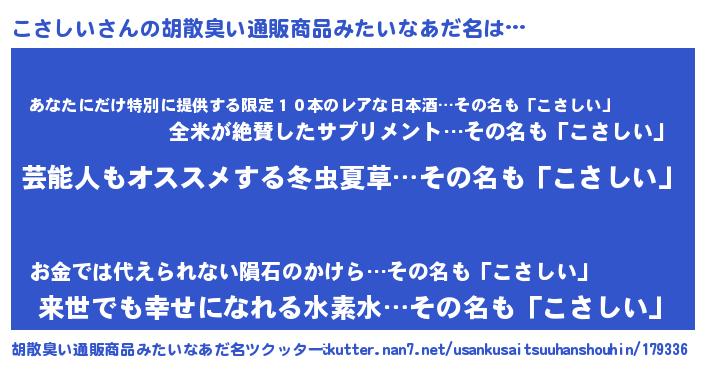 | ヘコむあだ名 | 『こさしい(震え声)』『こさお』 |