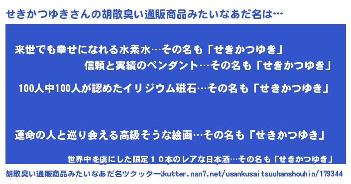 | ヘコむあだ名 | 『せきかつゆき(苦笑)』『せきっ子』 |