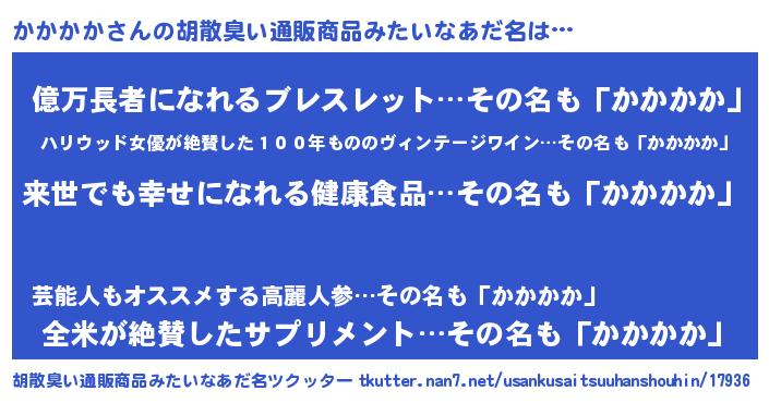| ヒーロー風カッコイイあだ名 | 『ネオカカカカ』『スーパーカカカカ』 |