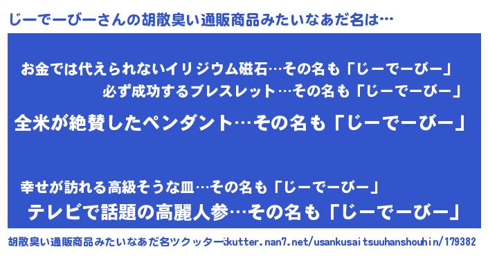 | 意味不明あだ名 | 『とにかく怪しいじーでーびー』 |