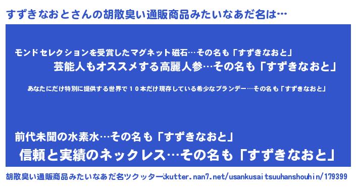 | ヘコむあだ名 | 『すずっちょ』『すずきなおと(笑)』 |