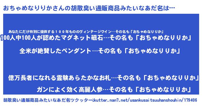 | 欧米人風あだ名 | 『ウサインおちゃめなりりか』 |