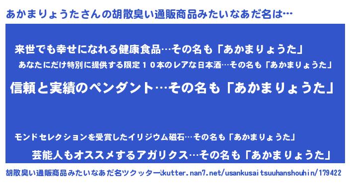 | 意味不明あだ名 | 『とにかく怪しいあかまりょうた』 |