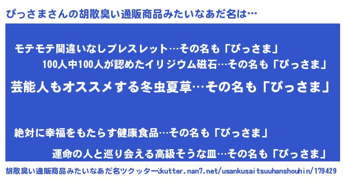 | 意味不明あだ名 | 『自称ぴっさま』『ペロリンぴっさま』 |