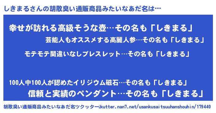 | 意味不明あだ名 | 『ペロリンしきまる』『自称しきまる』 |