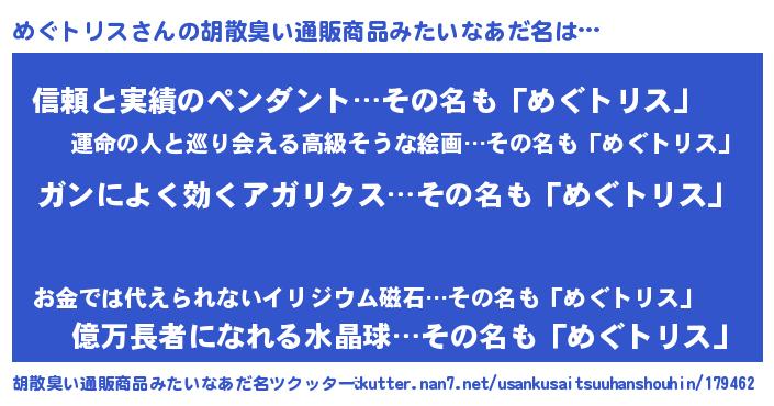 | 意味不明あだ名 | 『しいたけ科めぐトリス属』 |