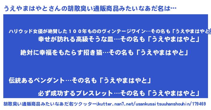 | ヒーロー風カッコイイあだ名 | 『ネオウエヤマハヤト』『仮面ウエダー』 |