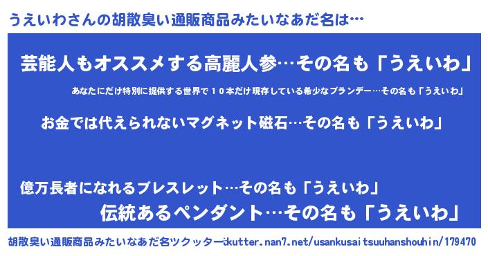 | 肩書あだ名 | 『うえいわ船長』『うえいわ学部長』 |