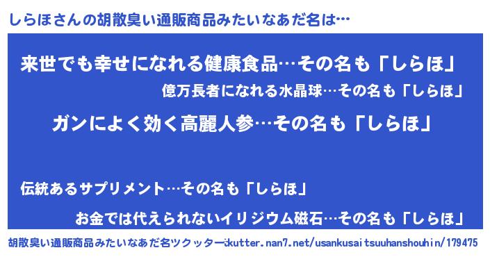 | ヘコむあだ名 | 『しらほ(笑)』『しらにゅー』 |