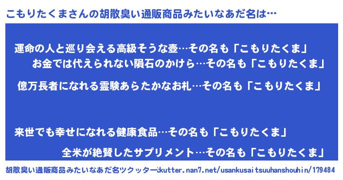 | 意味不明あだ名 | 『ペロリンこもりたくま』 |