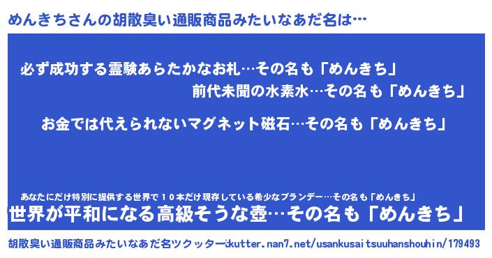 | 欧米人風あだ名 | 『ダニエルめんきち』『マイケルめんきち』 |