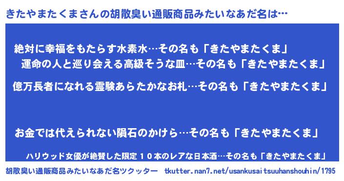 | ヘコむあだ名 | 『きたっふぃ~』『きたやまたくま(震え声)』 |