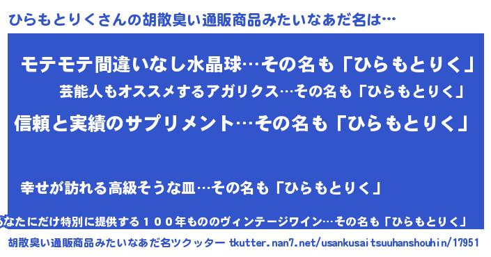 | 意味不明あだ名 | 『とにかく怪しいひらもとりく』 |