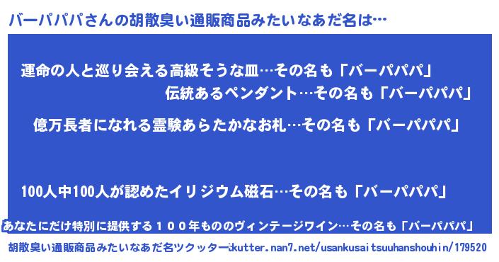 | ヒーロー風カッコイイあだ名 | 『スーパーバーパパパ』『仮面バーダー』 |