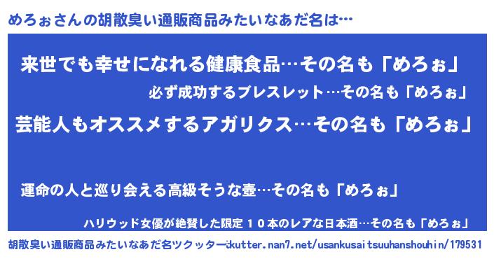 | ヘコむあだ名 | 『めろぉ(笑)』『めろにゅー』 |