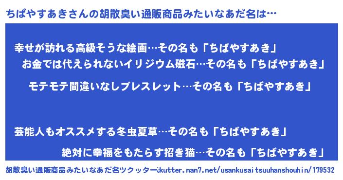 | 伝説のあだ名 | 『不死鳥の竜騎士ちばやすあき』 |