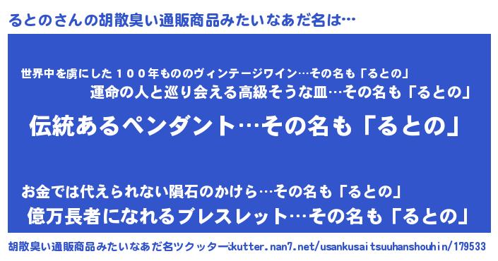 | 意味不明あだ名 | 『とにかく怪しいるとの』 |