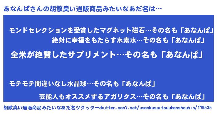 | 意味不明あだ名 | 『とにかく怪しいあなんぱ』 |