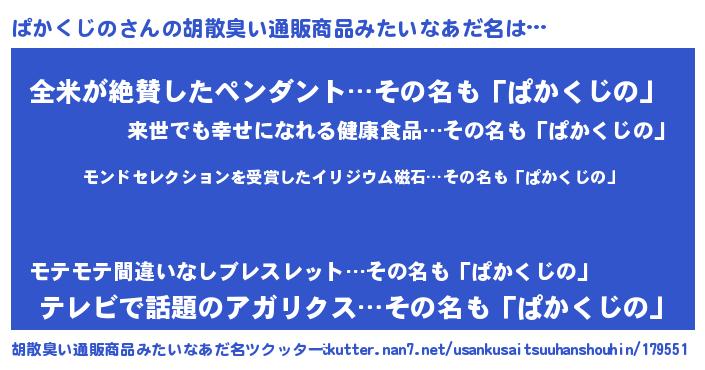 | ヘコむあだ名 | 『ぱかっぺ』『ぱかくじの(笑)』 |