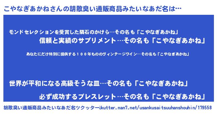 | 男性向けラノベタイトル風あだ名 | 『こやなぎあかねに滅ぼされるだけの簡単なお仕事です』 |
