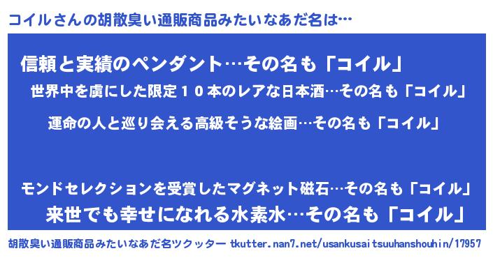 | 女子向けラノベタイトル風あだ名 | 『コイルの婚約者』 |