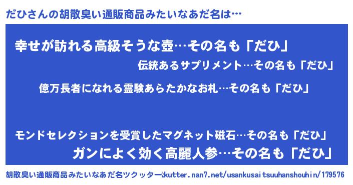 | ヘコむあだ名 | 『だひっふぃ~』『牛乳』『だひを』 |