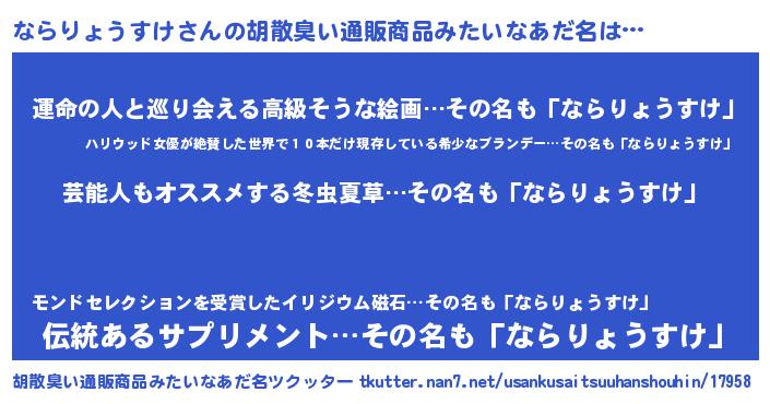 | ヒーロー風カッコイイあだ名 | 『最強戦士ナラリョウスケ』 |