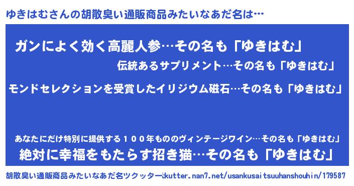 | ヘコむあだ名 | 『ゆきはむ(爆)』『ゆきお』『牛乳』 |
