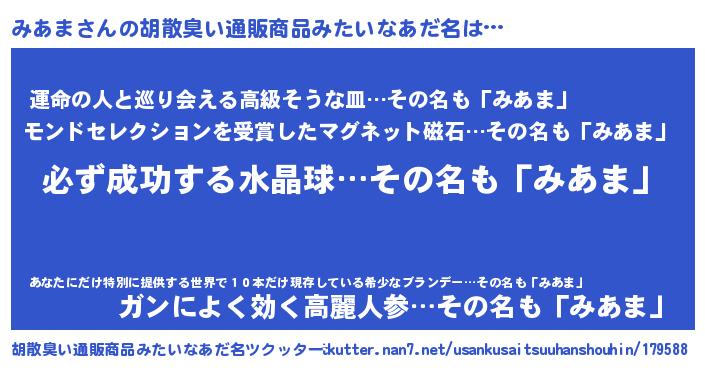 | ヘコむあだ名 | 『みあにゅー』『レバニラ』『みあを』 |