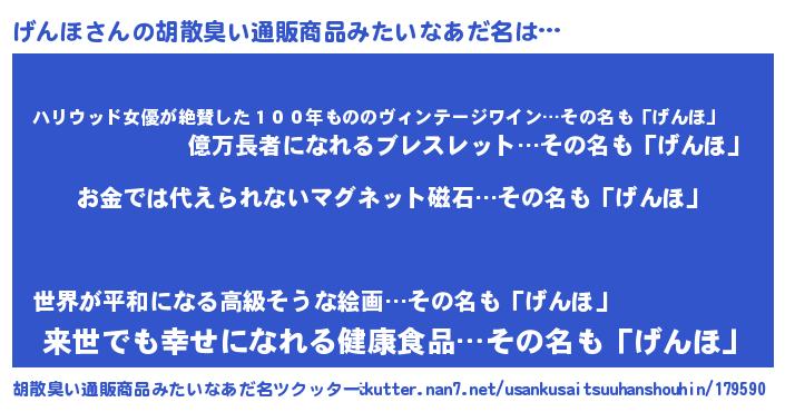 | 男性向けラノベタイトル風あだ名 | 『おまえをオタクにしてやるから、俺をげんほにしてくれ! 』 |