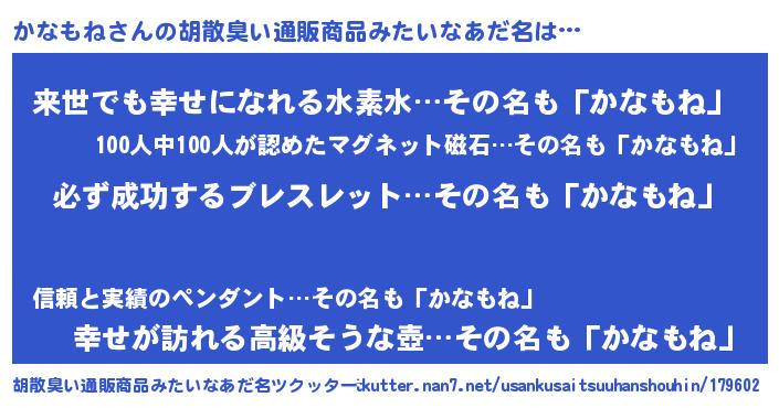 | 男性向けラノベタイトル風あだ名 | 『カナモネスレイヤー』 |