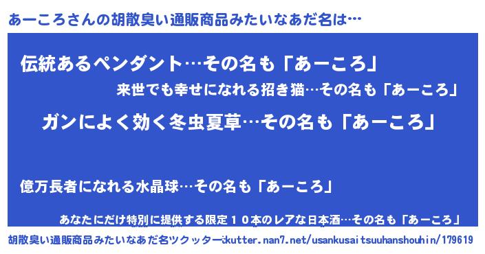 | ヘコむあだ名 | 『あーっちょ』『あーころ(遠い目)』 |
