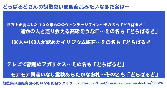 | ヘコむあだ名 | 『どらもー』『なまこ酢』『どらっ子』 |