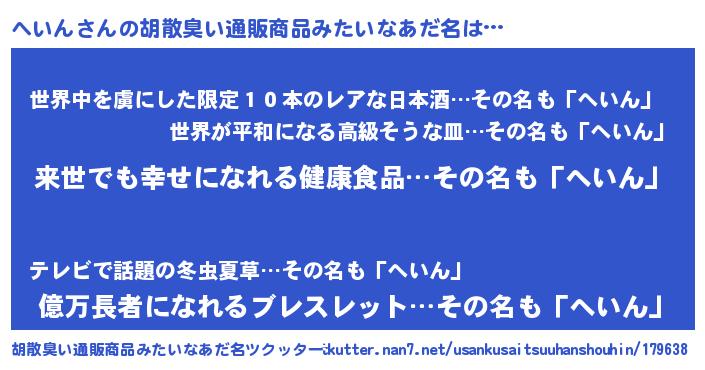 | ヘコむあだ名 | 『へいん(爆)』『へいにゅー』 |