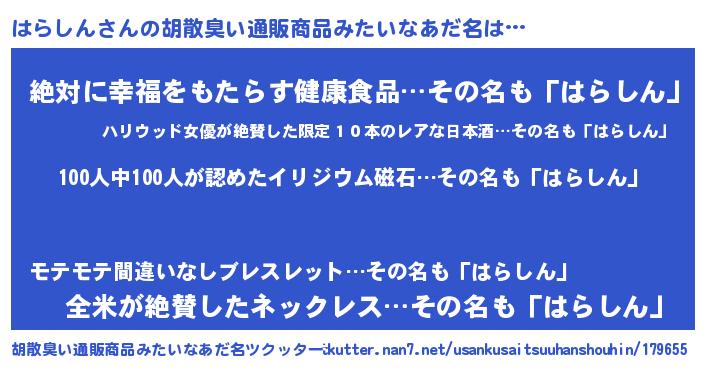 | ヒーロー風カッコイイあだ名 | 『正義の使者はらしん』『ネオハラシン』 |