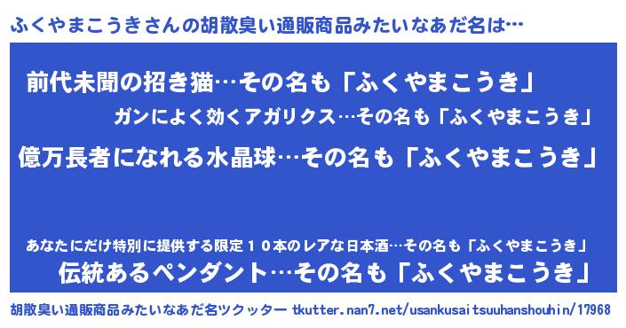 | 男性向けラノベタイトル風あだ名 | 『うちのふくやまこうきが世界を掌握している!』 |