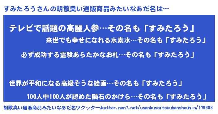 | 男性向けラノベタイトル風あだ名 | 『すみたろうの憂鬱』『緋弾のスミタロウ』 |