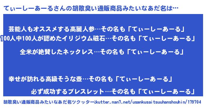 | 意味不明あだ名 | 『とにかく怪しいてぃーしーあーる』 |
