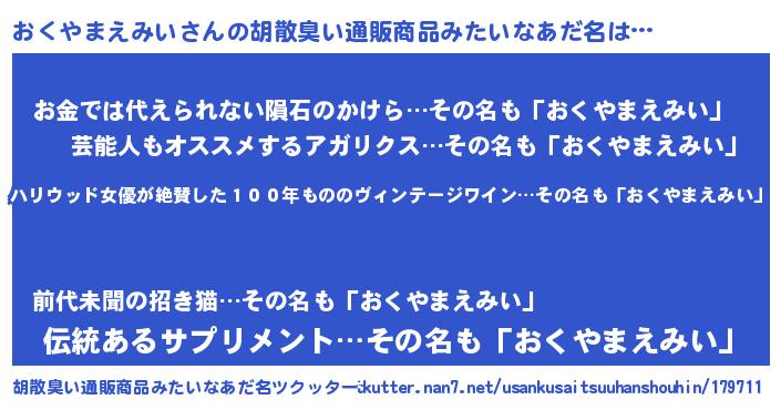 | 欧米人風あだ名 | 『アンジェラ・おくやまえみい』 |