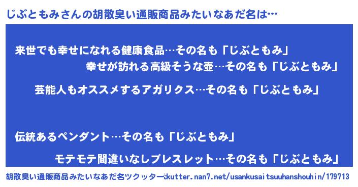 | 男性向けラノベタイトル風あだ名 | 『じぶともみに滅ぼされるだけの簡単なお仕事です』 |