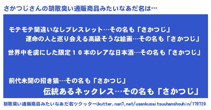 | 意味不明あだ名 | 『住所不定無職さかつじ(43歳)』 |