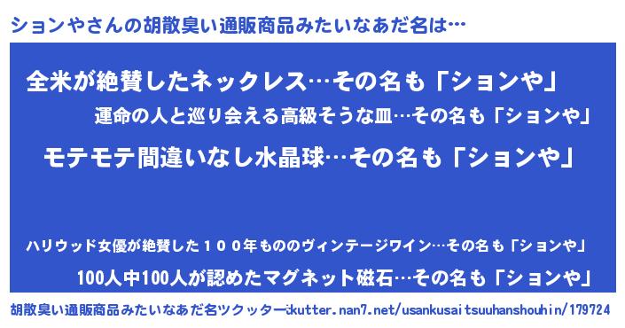 | 肩書あだ名 | 『ションやディレクター』『ションや店長』 |