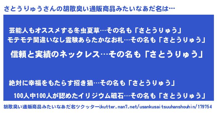 | 意味不明あだ名 | 『とにかく怪しいさとうりゅう』 |